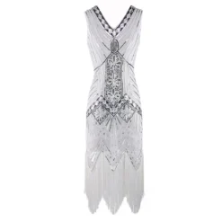 Women’s Retro 1920s Fringe Dress Midi Dress Party Halloween Sequins Tassel Fringe Floral V Neck Sleeveless Regular Fit Spring Fall 2023 Silver Red S M L XL