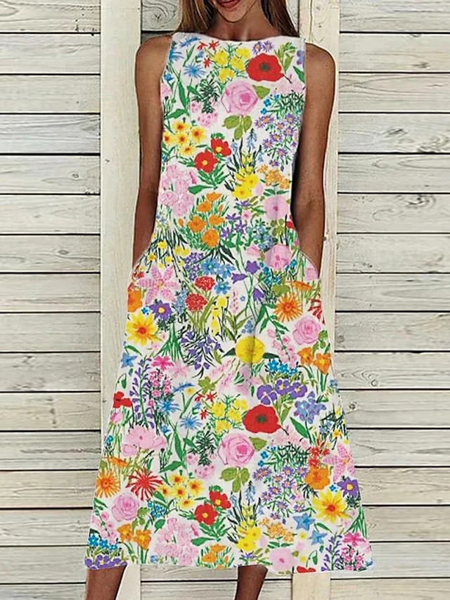 Women‘s A Line Dress Midi Dress Sleeveless Floral Pocket Cold Shoulder Print Spring Summer Round Neck Casual Vintage Going Out 2023 S M L XL XXL Cotton