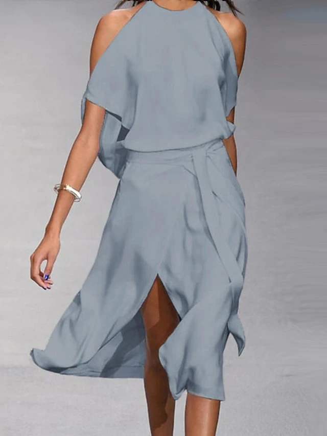 Women‘s A Line Dress Midi Dress White Black Gray Sleeveless Pure Color Split Spring Summer Cold Shoulder Personalized Stylish Elegant Loose 2023 S M L XL XXL