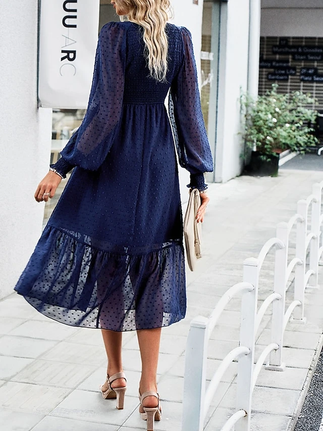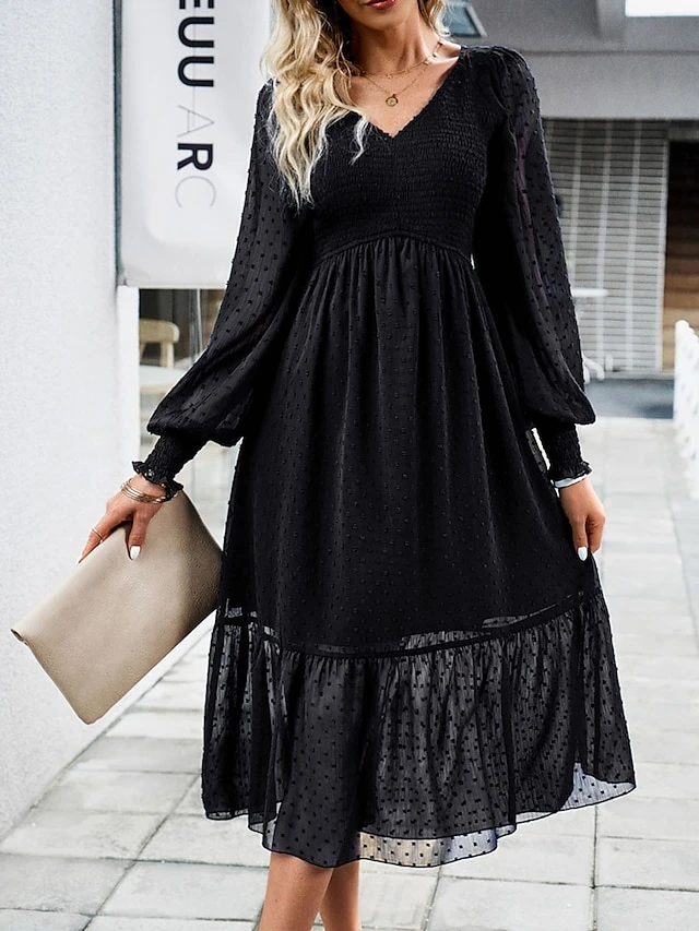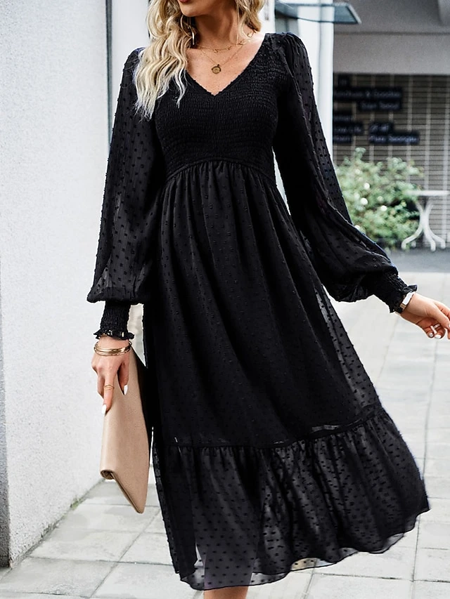 Women’s Casual Dress Black Dress Plain Dress Midi Dress Ruched Street Daily Holiday Fashion Streetwear V Neck Long Sleeve 2023 Slim Black Blue Dark Blue Color S M L XL Size