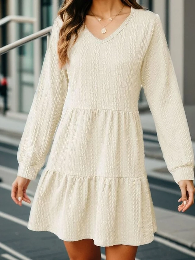 Women’s Casual Dress Bodycon Black Dress Mini Dress Patchwork Outdoor Street Daily Active Fashion V Neck Long Sleeve 2023 Regular Fit Light Pink Black Dark Blue Color S M L XL XXL Size