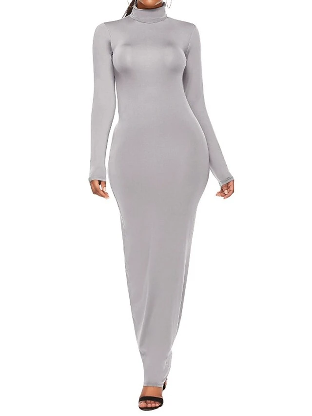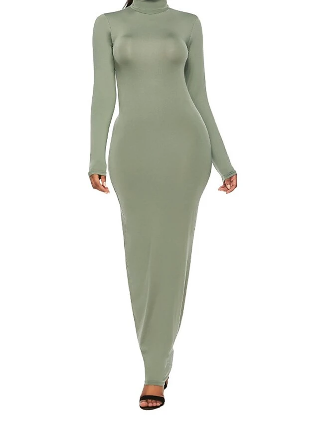 Women’s Casual Dress Bodycon Plain Dress Long Dress Maxi Dress Ruched Daily Holiday Date Fashion Streetwear Turtleneck Long Sleeve 2023 Regular Fit Yellow Pink Burgundy Color S M L Size
