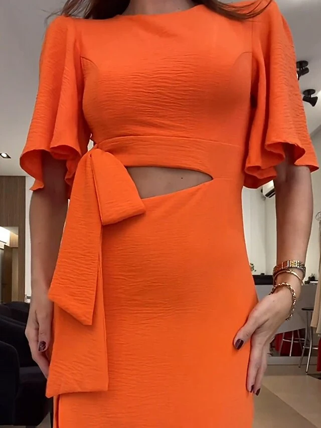 Women’s Casual Dress Bodycon Sheath Dress Long Dress Maxi Dress Lace Up Backless Outdoor Date Vacation Fashion Sexy Crew Neck Long Sleeve 2023 Regular Fit Orange Color S M L XL XXL Size
