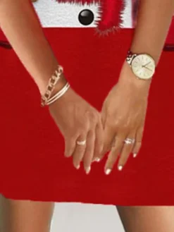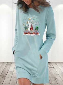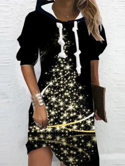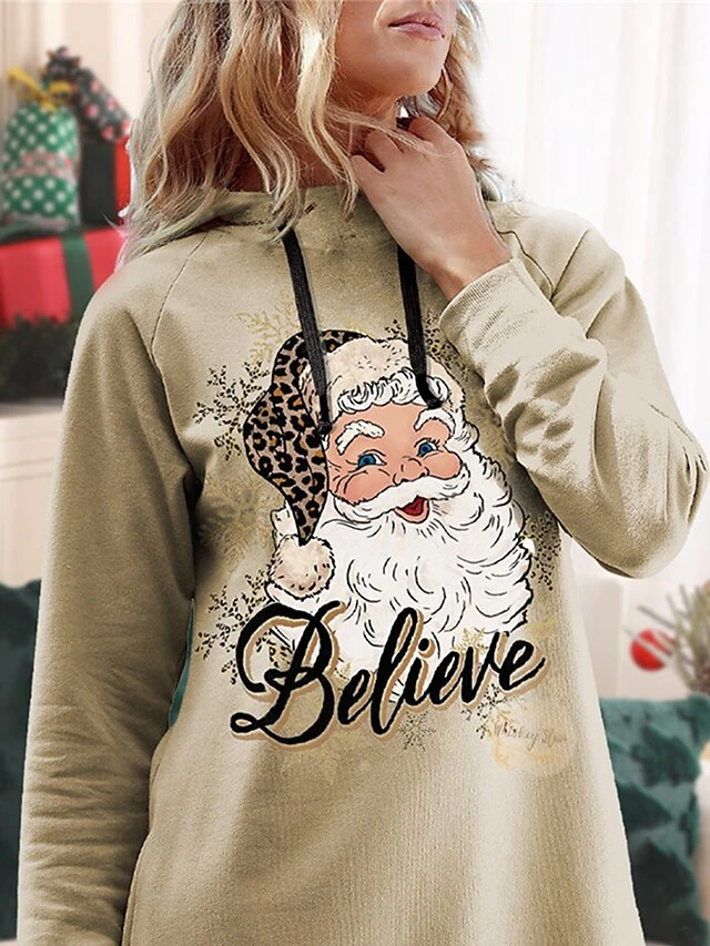 Women’s Casual Dress Christmas Dress Hoodie Dress Santa Claus Ugly Christmas Print Hooded Mini Dress Fashion Streetwear Outdoor Christmas Long Sleeve Loose Fit Gold Fall Winter S M L XL XXL