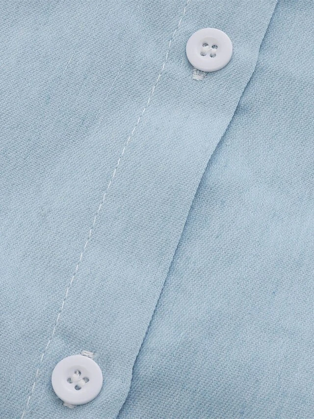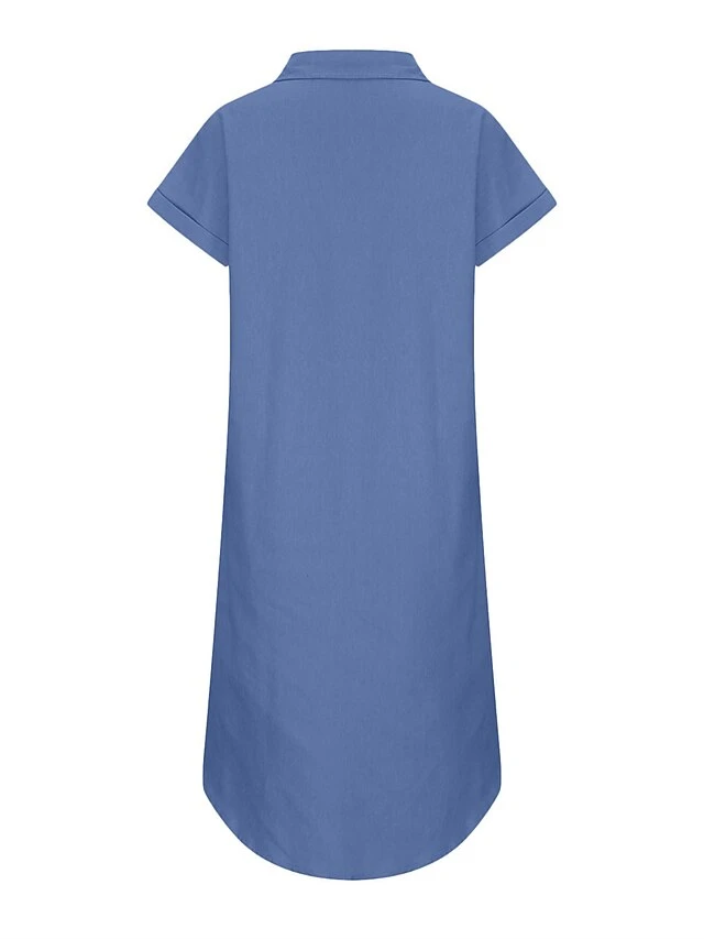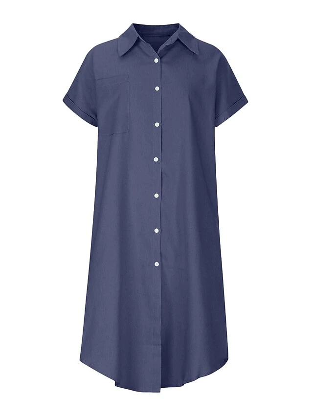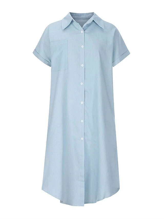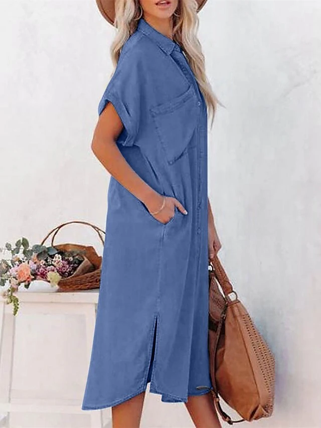 Women’s Casual Dress Denim Shirt Dress Midi Dress Denim Fashion Casual Outdoor Daily Vacation Shirt Collar Button Pocket Short Sleeve Summer Spring Fall 2023 Loose Fit Navy Blue Blue Sky Blue Plain S