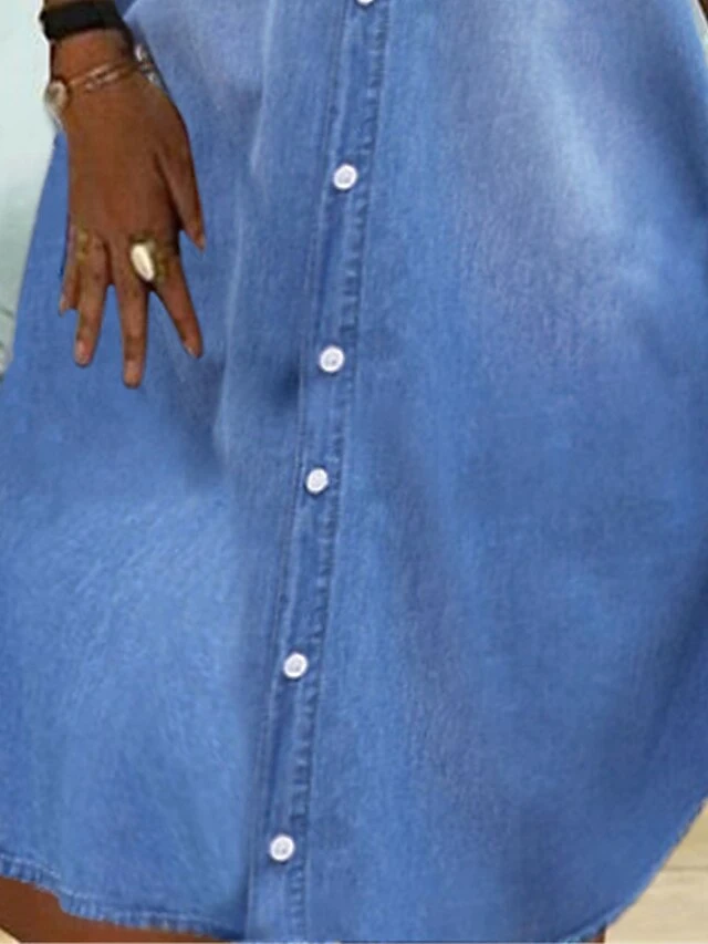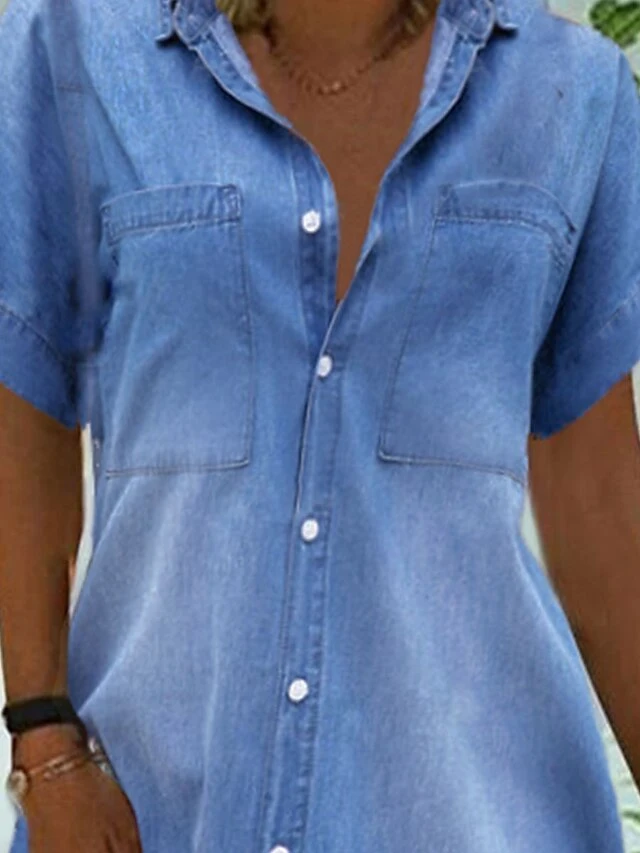 Women’s Casual Dress Denim Shirt Dress Midi Dress Denim Fashion Modern Outdoor Daily Shirt Collar Button Pocket Short Sleeve Summer Spring 2023 Regular Fit Blue Plain S M L XL 2XL