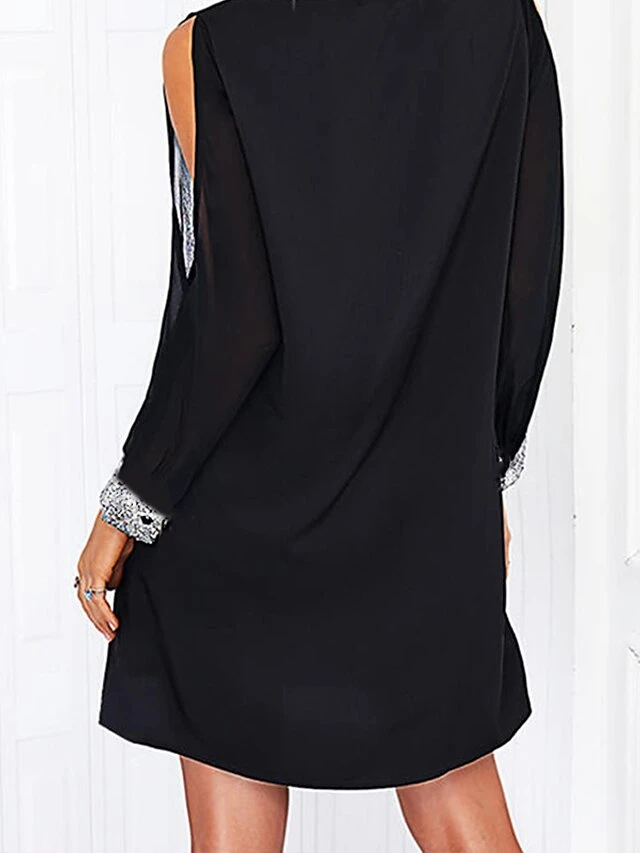 Women’s Casual Dress Holiday Dress Black Dress Mini Dress Black Long Sleeve Plain Sequins Summer Spring V Neck Casual Winter Dress Fall Dress 2023 S M L XL 2XL 3XL