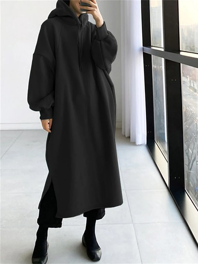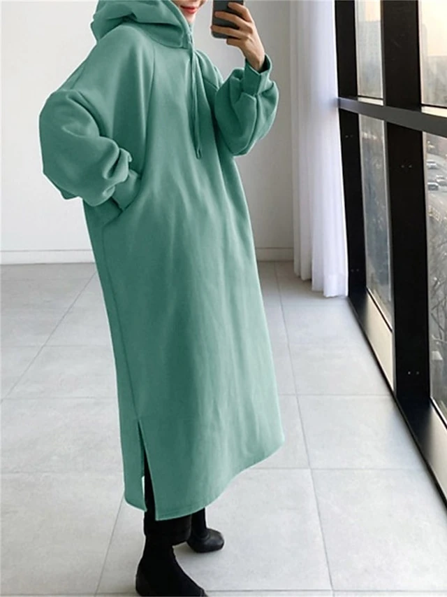 Women’s Casual Dress Hoodie Dress Long Dress Maxi Dress Active Daily Outdoor Holiday Vacation Hoodie Solid Color Loose Fit ArmyGreen Black Green S M L XL XXL