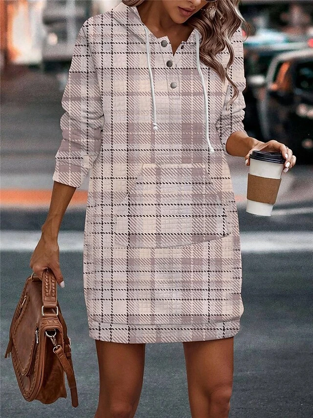 Women’s Casual Dress Hoodie Dress Mini Dress Warm Fashion Outdoor Vacation Going Out Hoodie Pocket Print Geometric Regular Fit Pink Rose Red Gray S M L XL XXL