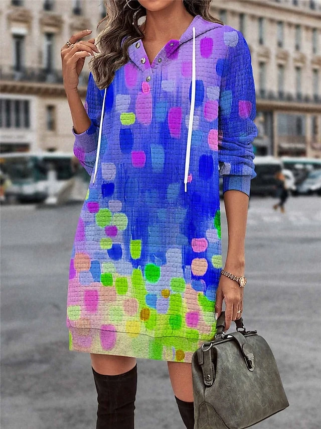 Women’s Casual Dress Hoodie Dress Mini Dress Warm Fashion Outdoor Vacation Going Out Hoodie Pocket Print Geometric Regular Fit Yellow Pink Blue S M L XL XXL