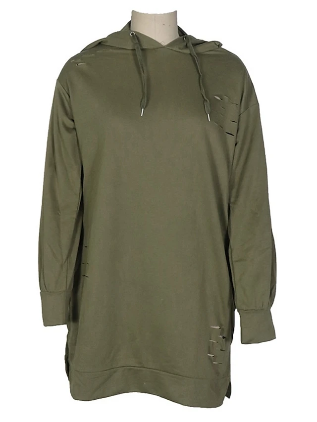 Women’s Casual Dress Hoodie Dress Plain Dress Mini Dress Pocket Ripped Outdoor Daily Going Out Active Fashion Hooded Long Sleeve 2023 Loose Fit Pink Khaki Army Green Color S M L XL Size