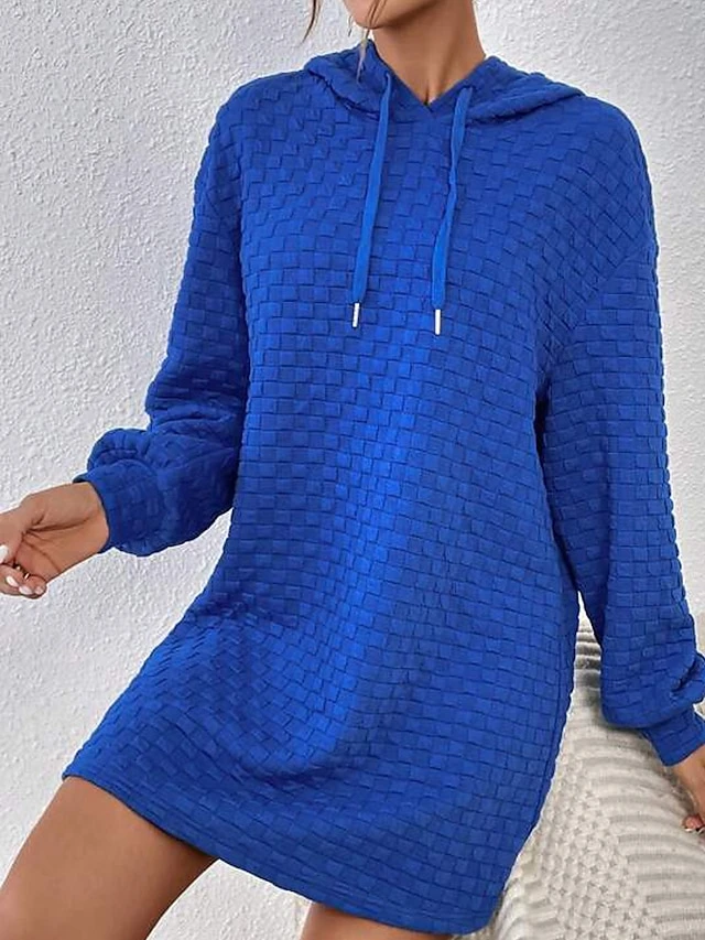 Women’s Casual Dress Hoodie Dress Shift Dress Mini Dress Patchwork Daily Date Vacation Active Fashion Hooded Long Sleeve 2023 Loose Fit Blue Color S M L XL XXL Size