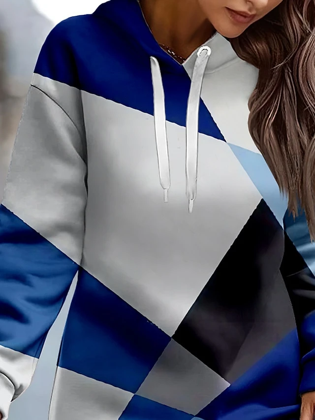 Women’s Casual Dress Hoodie Dress Winter Dress Geometric Color Block Print Hooded Mini Dress Fashion Streetwear Outdoor Daily Long Sleeve Loose Fit Blue Fall Winter S M L XL XXL