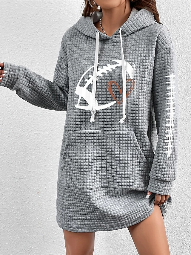 Women’s Casual Dress Hoodie Dress Winter Dress Heart Football Pocket Print Hooded Mini Dress Fashion Streetwear Outdoor Daily Long Sleeve Loose Fit Gray Fall Winter S M L XL XXL