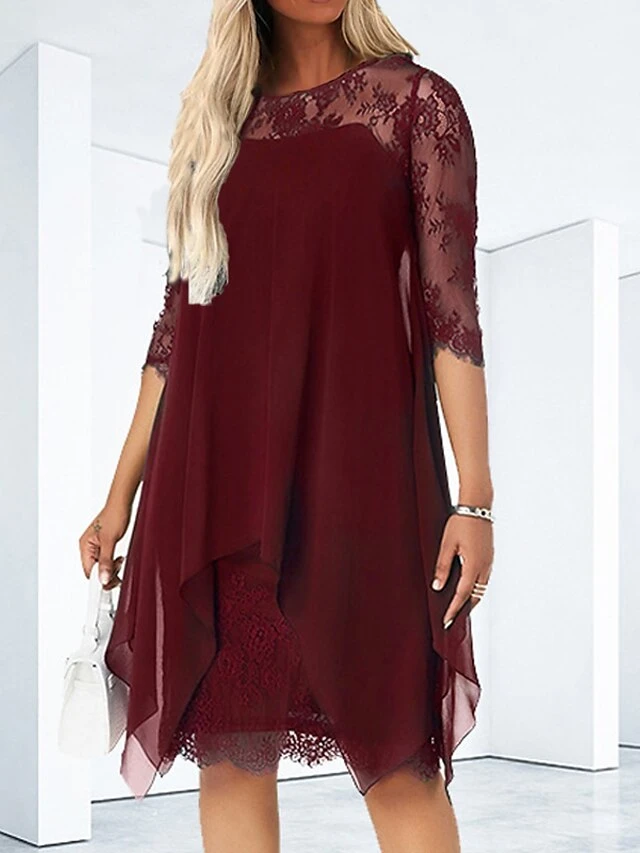 Women’s Casual Dress Lace Dress Shift Dress Mini Dress Black Wine Blue 3/4 Length Sleeve Pure Color Lace Summer Spring Crew Neck Fashion 2023 S M L XL XXL 3XL 4XL 5XL