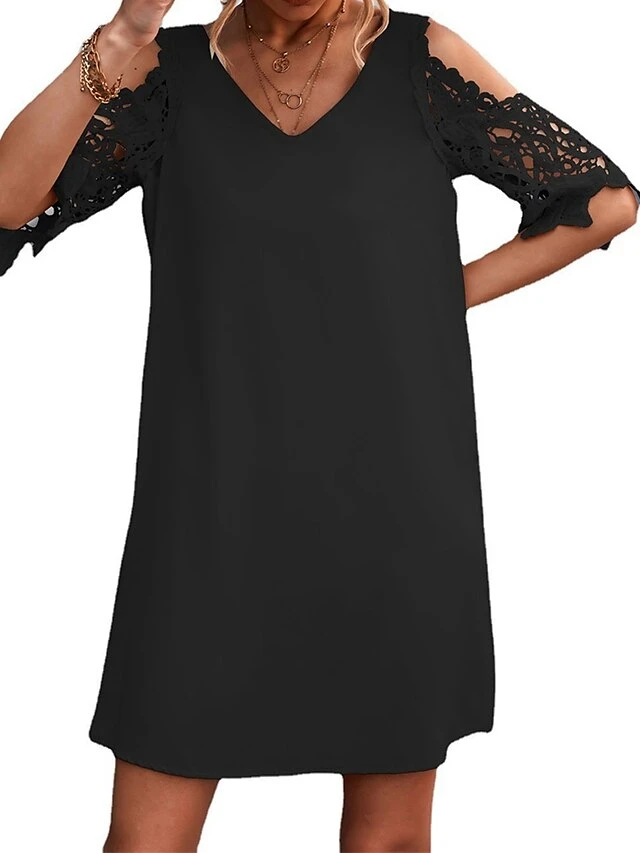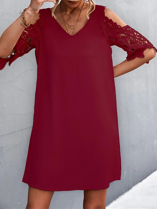 Women’s Casual Dress Lace Dress Shift Dress Mini Dress Lace Cold Shoulder Outdoor Street Daily Fashion Streetwear V Neck Half Sleeve 2023 Regular Fit Black Wine Apricot Color S M L XL XXL Size