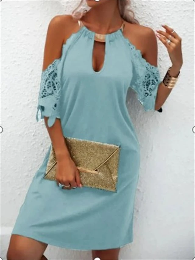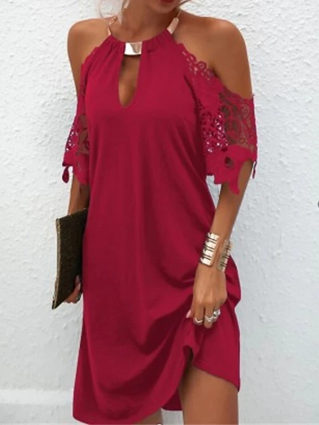 Women’s Casual Dress Lace Dress Summer Dress Plain Cut Out Halter Mini Dress Active Fashion Outdoor Daily Sleeveless Loose Fit Black Red Royal Blue Spring Summer S M L XL XXL