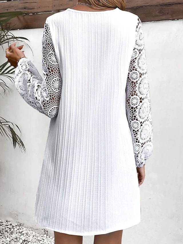 Women’s Casual Dress Lace Dress White Dress Midi Dress Lace Ruched Outdoor Street Daily Active Fashion V Neck Long Sleeve 2023 Regular Fit White Color S M L XL XXL Size