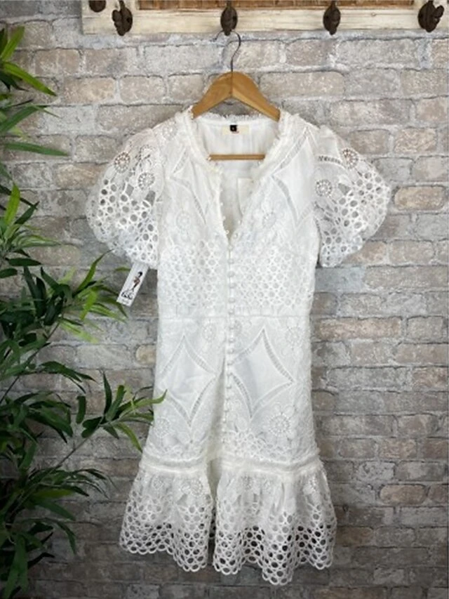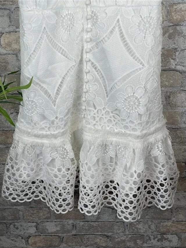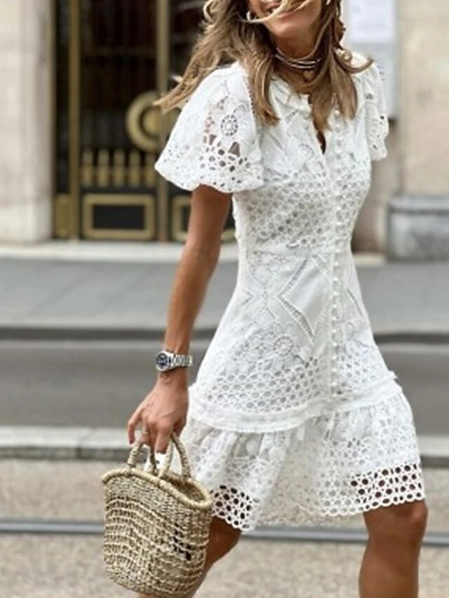 Women’s Casual Dress Lace Dress White Dress Mini Dress Lace Up Street Holiday Vacation Fashion Streetwear V Neck Short Sleeve 2023 Slim White Color S M L XL XXL Size