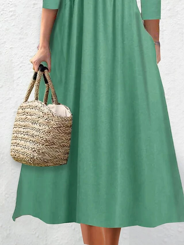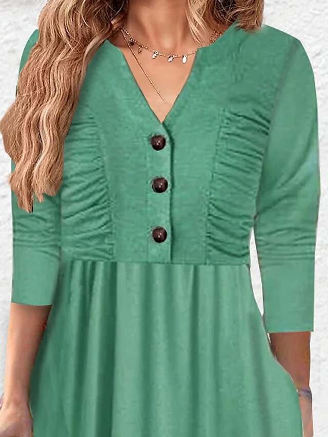 Women’s Casual Dress Plain Dress Empire Waist Dresses Midi Dress Ruched Button Outdoor Daily Vacation Fashion Classic V Neck Long Sleeve 2023 Loose Fit Pink Green Color S M L XL XXL Size