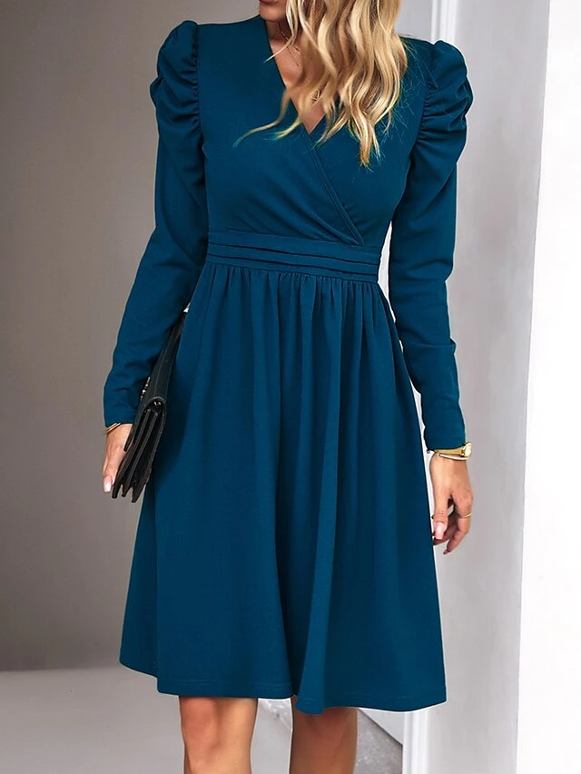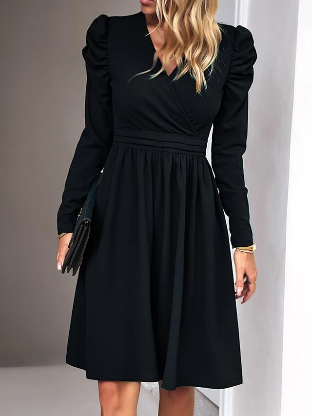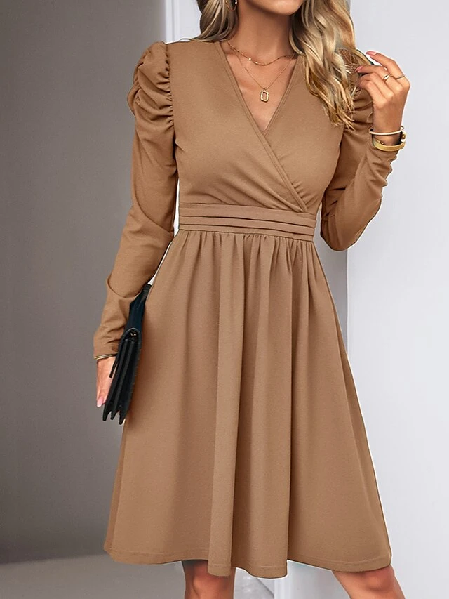 Women’s Casual Dress Plain Dress Empire Waist Dresses Midi Dress Ruched Outdoor Daily Holiday Fashion Modern V Neck Long Sleeve 2023 Regular Fit Black Green Khaki Color S M L XL Size