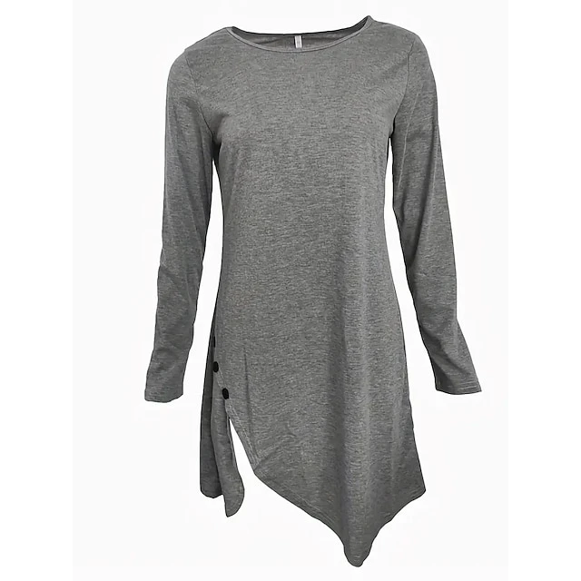 Women’s Casual Dress Plain Dress Mini Dress Button Outdoor Daily Going Out Active Fashion Crew Neck Long Sleeve 2023 Regular Fit Black Pink Red Color S M L XL XXL Size