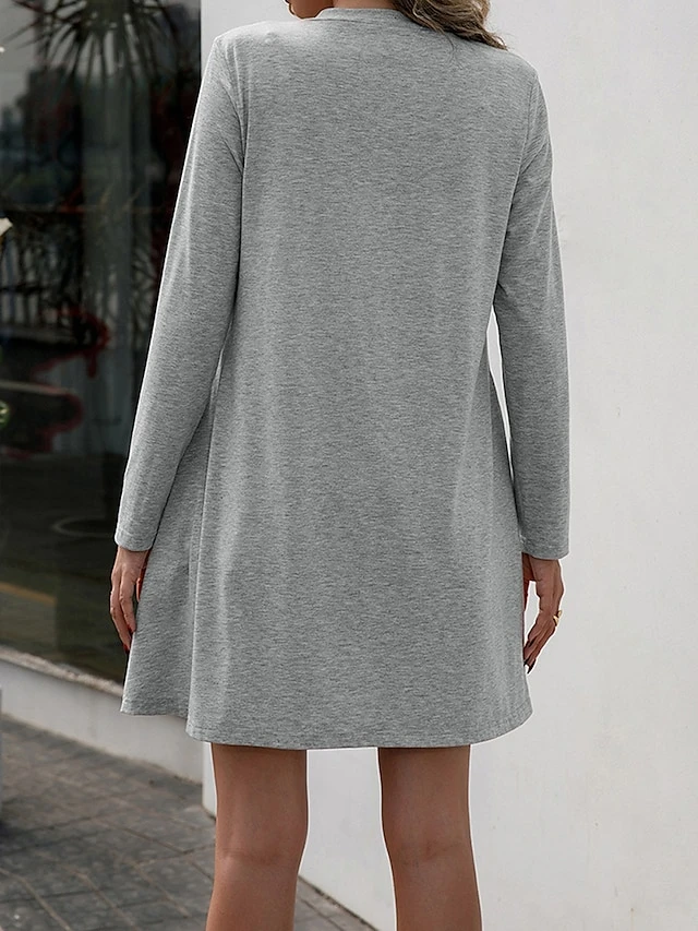 Women’s Casual Dress Plain Dress Mini Dress Button Pocket Daily Holiday Date Active Streetwear V Neck Long Sleeve 2023 Loose Fit Black Gray Color S M L XL Size