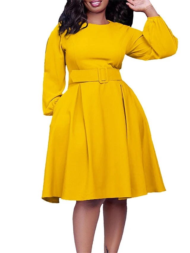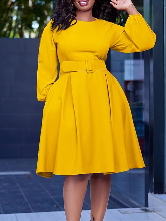 Women’s Casual Dress Plain Dress Spring Dress Midi Dress Ruched With Belt Street Daily Holiday Fashion Streetwear Crew Neck Long Sleeve 2023 Regular Fit White Yellow Royal Blue Color S M L XL XXL Size