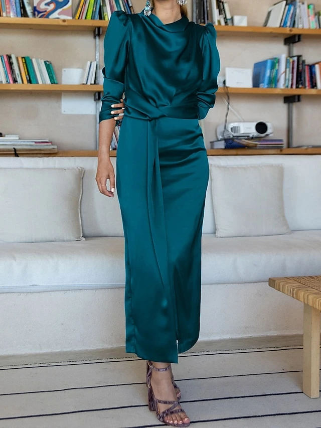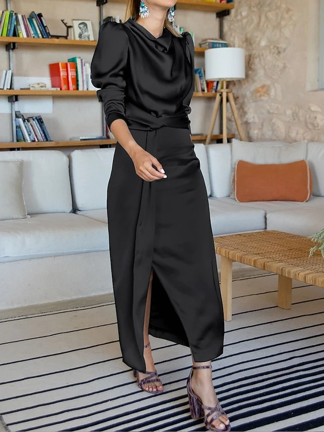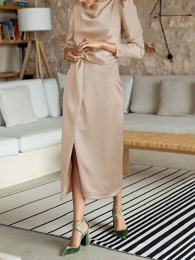 Women’s Casual Dress Plain Dress Spring Dress Midi Dress Split Knot Front Work Street Daily Fashion Streetwear Crew Neck Long Sleeve 2023 Regular Fit Black Blue Green Color S M L XL Size