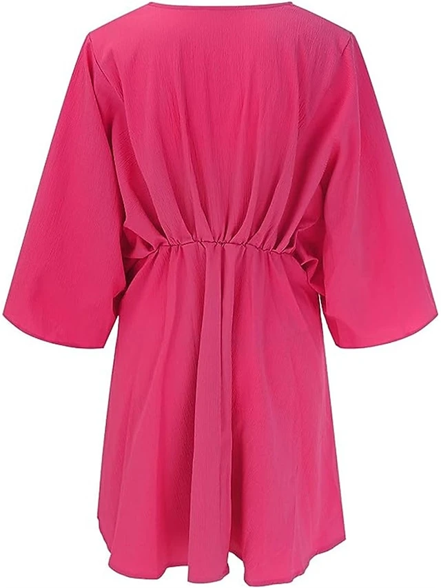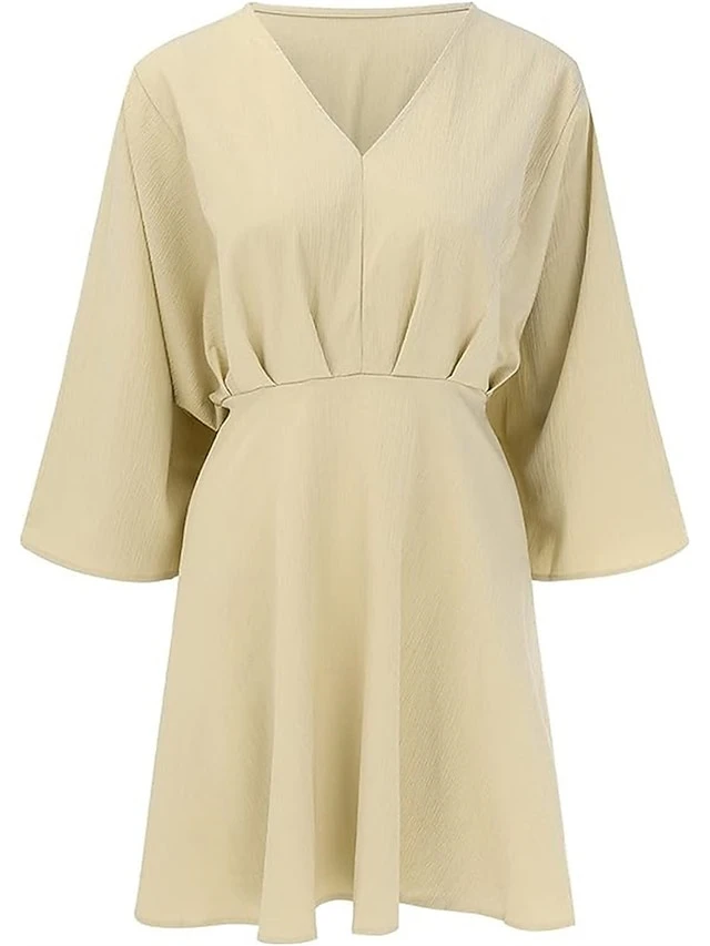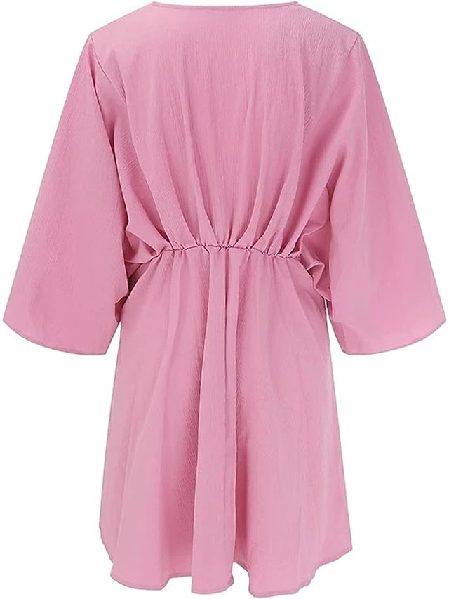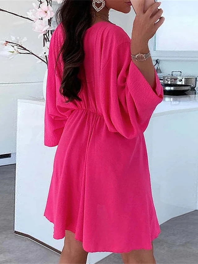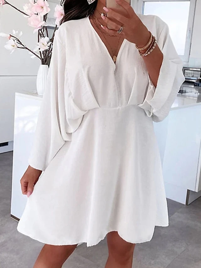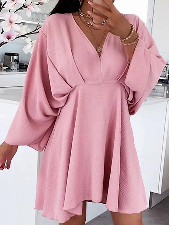 Women’s Casual Dress Plain Dress Spring Dress Mini Dress Ruched Daily Date Going Out Fashion Basic V Neck Long Sleeve 2023 Loose Fit Black White Pink Color S M L XL Size