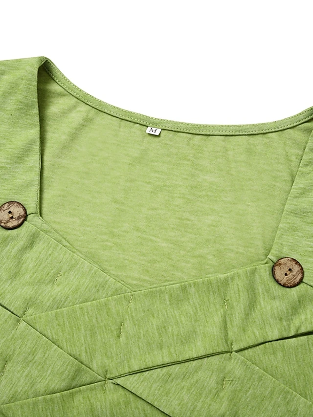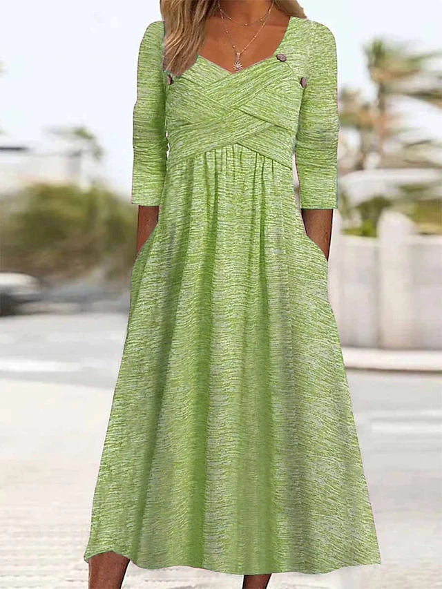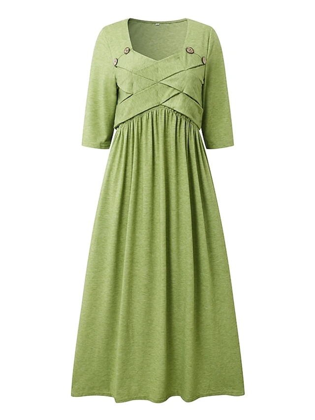 Women’s Casual Dress Pleated Dress Plain Dress Plain Ruched Pocket Square Neck Midi Dress Fashion Modern Daily Vacation 3/4 Length Sleeve Regular Fit Pink Purple Green Summer Spring S M L XL XXL