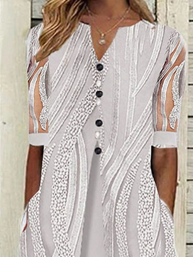 9. Chic striped pattern: This dress features a chic striped pattern that adds a touch of sophistication to your look.