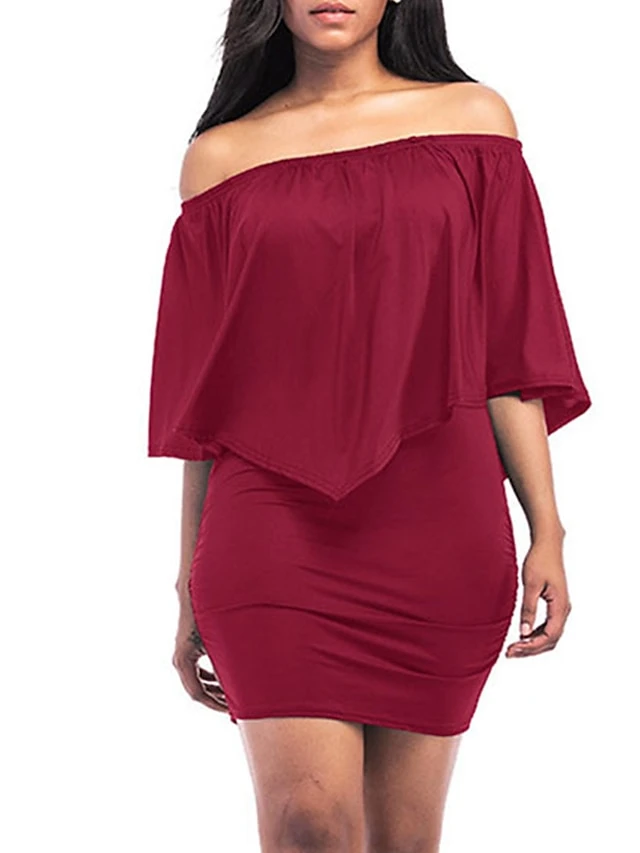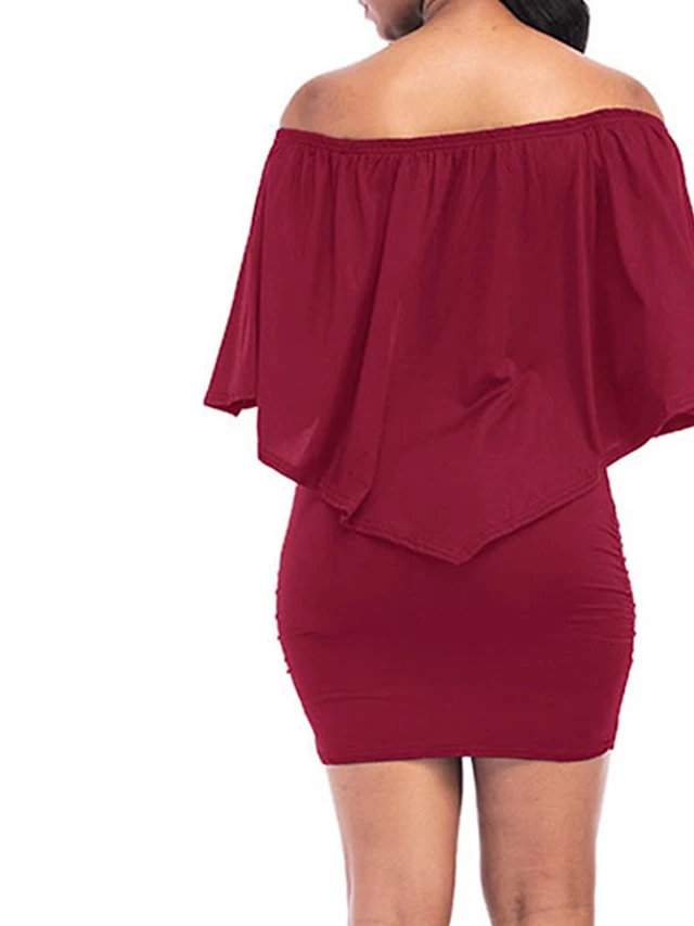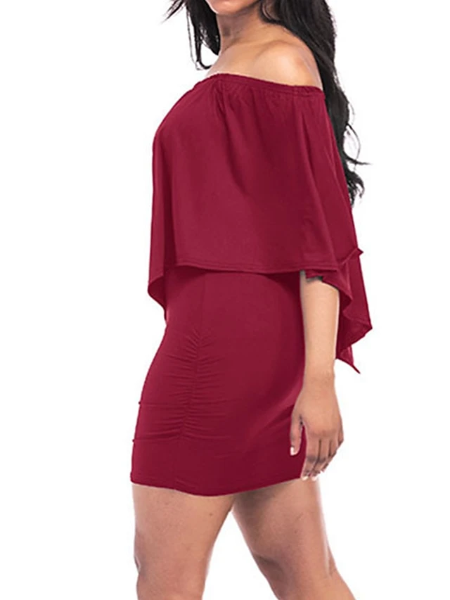 Women’s Casual Dress Sheath Dress Plain Dress Plain Layered Off Shoulder Mini Dress Active Fashion Holiday Vacation Half Sleeve Regular Fit White Wine Red Spring Summer S M L XL XXL