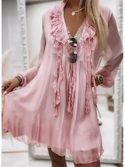 Women’s Casual Dress Sheath Dress Summer Dress Midi Dress Fake Two Piece Outdoor Street Daily Fashion Elegant V Neck Half Sleeve 2023 Regular Fit Black Wine Color S M L XL XXL Size