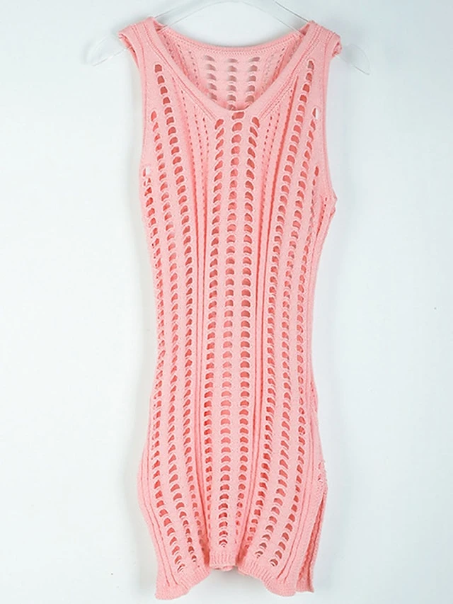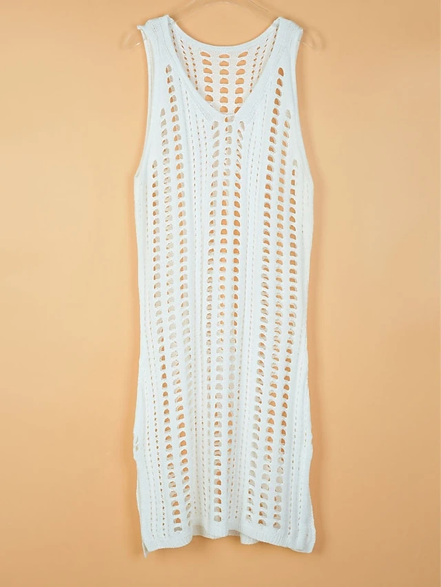 Women’s Casual Dress Sheath Dress Sundress Mini Dress Black And White Black White Sleeveless Pure Color Hollow Out Summer Spring V Neck Fashion 2023 S M L XL
