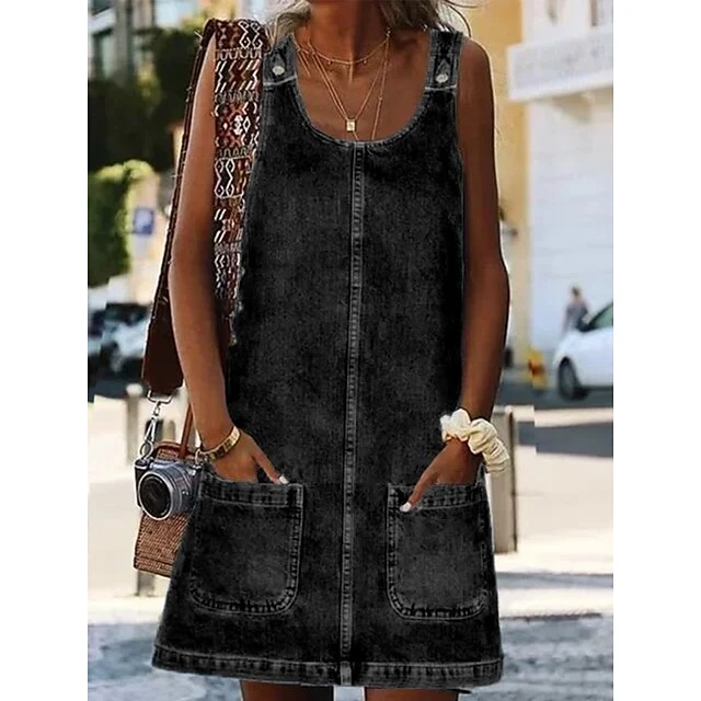 7. Perfect for Summer: Made with denim fabric and sleeveless design, this mini dress is perfect for the summer season.