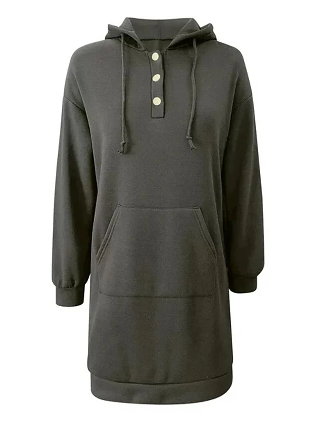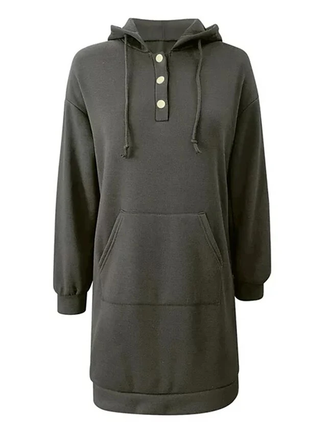 Women’s Casual Dress Shift Dress Plain Dress Mini Dress Button Pocket Outdoor Street Daily Fashion Streetwear Hooded Long Sleeve 2023 Loose Fit Black Light Green Wine Color S M L XL XXL Size