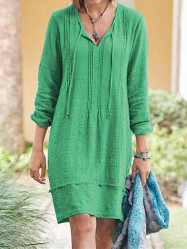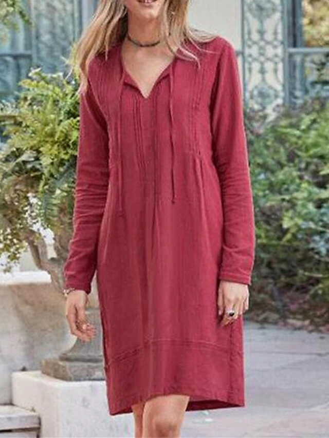 Women’s Casual Dress Shift Dress Plain Dress Plain Patchwork V Neck Midi Dress Streetwear Modern Outdoor Daily Long Sleeve Regular Fit Black Yellow Red Spring Summer S M L XL XXL