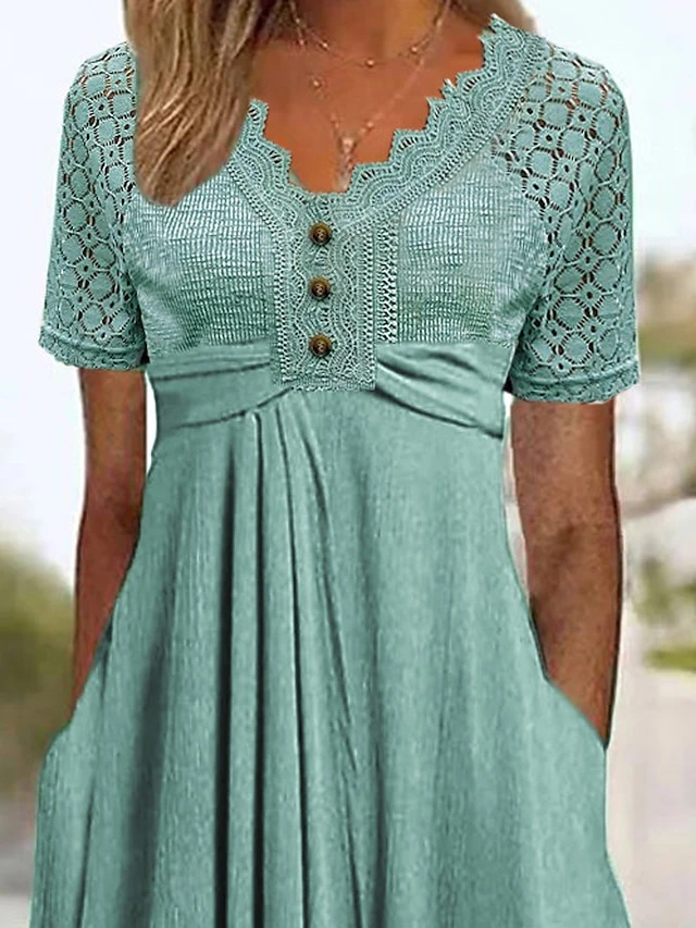 Women’s Casual Dress Summer Dress Midi Dress Lace Patchwork Daily Date Going Out Fashion Modern V Neck Short Sleeve 2023 Regular Fit Green Color S M L XL XXL Size