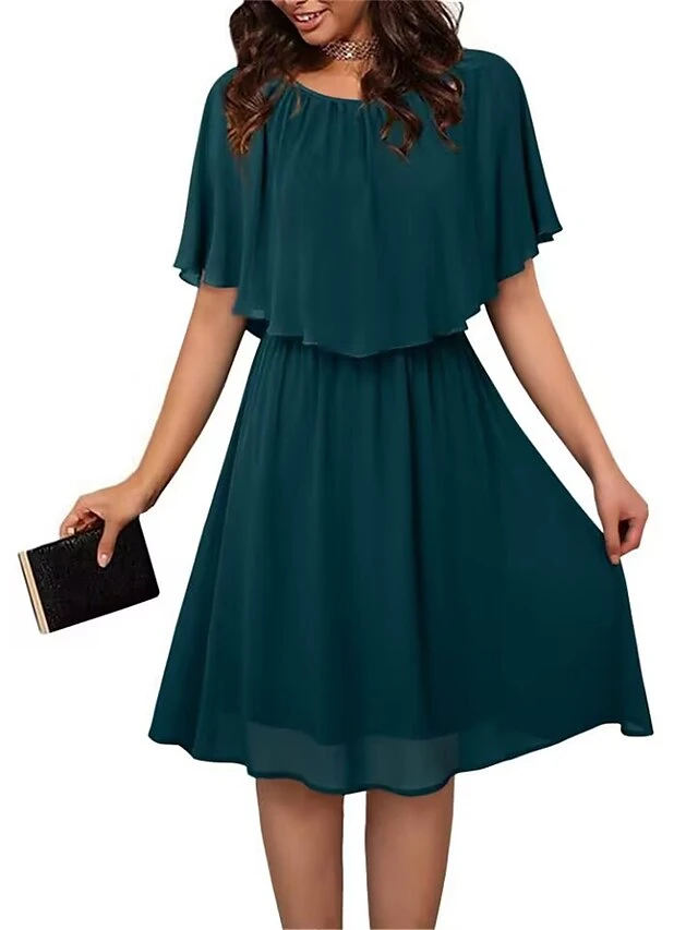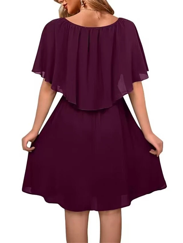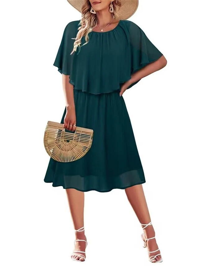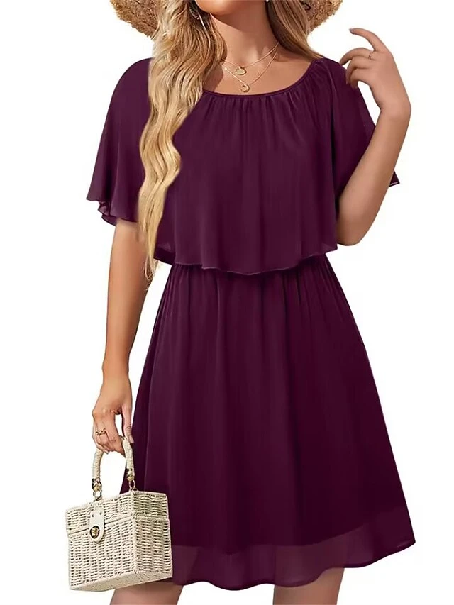 Women’s Casual Dress Summer Dress Plain Dress Midi Dress Fake Two Piece Outdoor Street Daily Fashion Streetwear Crew Neck Short Sleeve 2023 Loose Fit Black White Wine Color S M L XL XXL Size