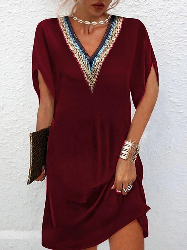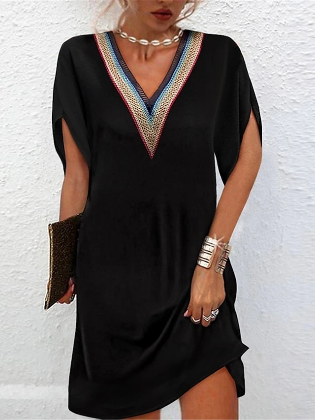 Women’s Casual Dress Summer Dress Plain Dress Mini Dress Patchwork Daily Going Out Weekend Fashion Basic V Neck Short Sleeve 2023 Loose Fit Black Red Blue Color S M L XL XXL Size
