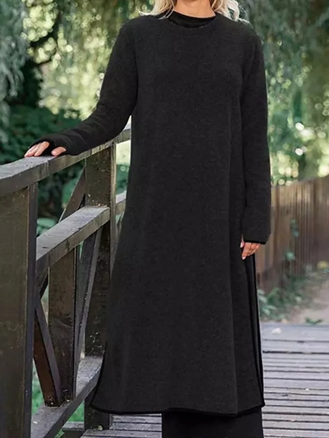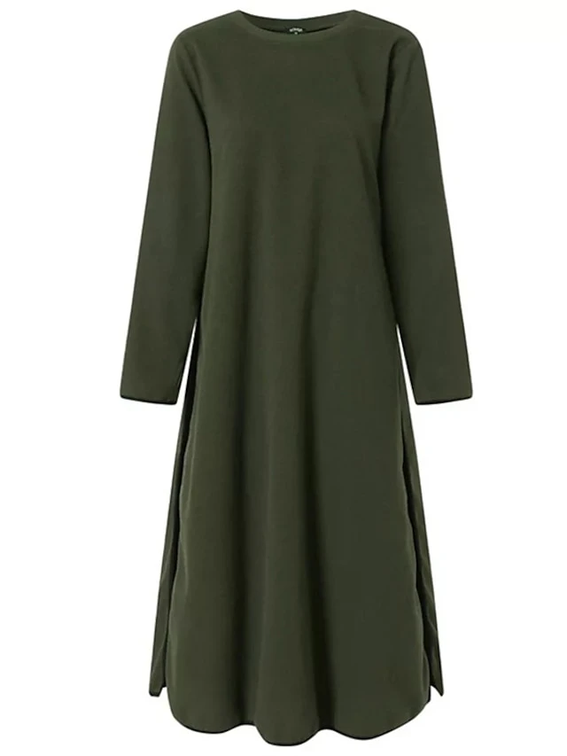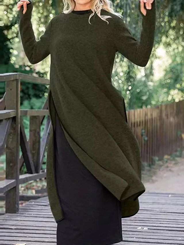 Women’s Casual Dress Sweater Dress Sweatshirt Dress Midi Dress Black Army Green Gray Long Sleeve Pure Color Split Fall Winter Autumn Crew Neck Casual Winter Dress Vacation Fall Dress 2023 S M L XL