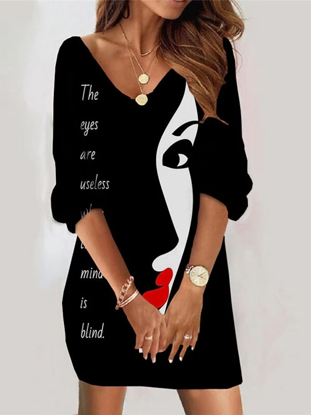 Women’s Casual Dress Sweatshirt Dress Bodycon Mini Dress Black White Dark Gray 3/4 Length Sleeve Letter Print Summer Spring V Neck Vacation Loose Fit 2023 S M L XL XXL 3XL 4XL 5XL