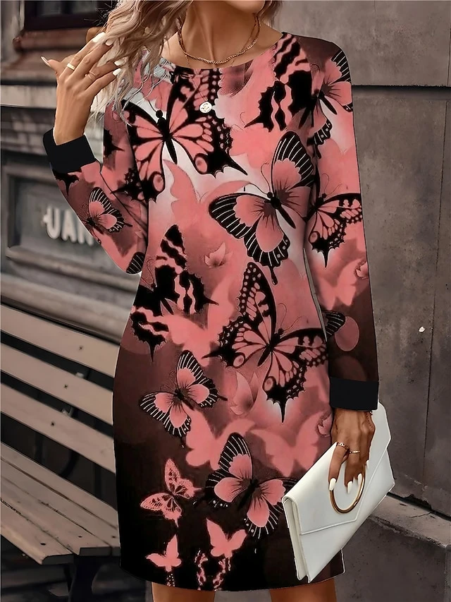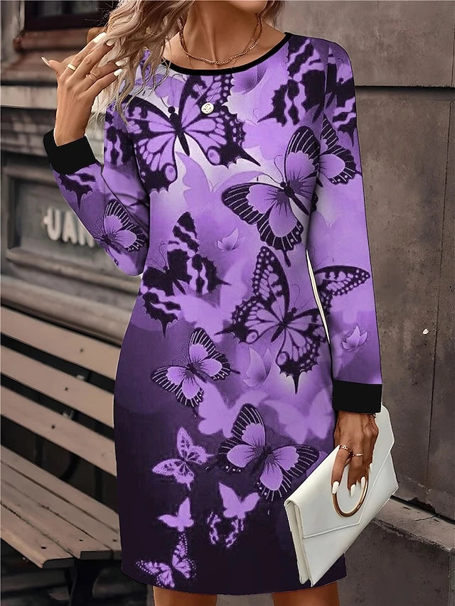 Women’s Casual Dress Sweatshirt Dress Mini Dress Active Fashion Outdoor Holiday Vacation Crew Neck Print Print Loose Fit Red Purple Gray S M L XL XXL