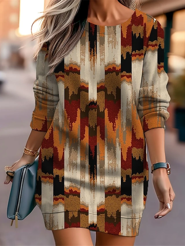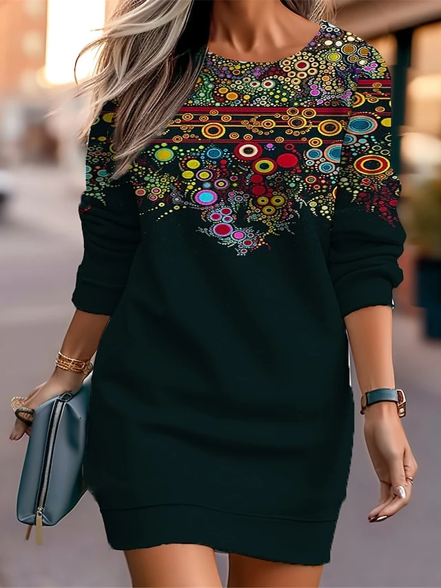 Women’s Casual Dress Sweatshirt Dress Mini Dress Warm Fashion Outdoor Vacation Going Out Crew Neck Print Floral Geometric Loose Fit Black Rusty Red Blue S M L XL XXL