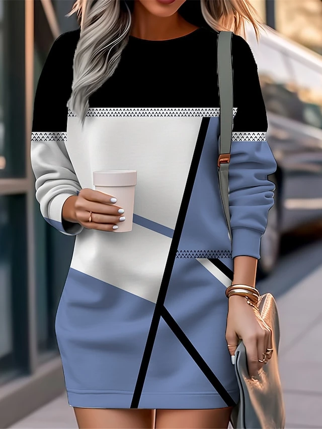 Women’s Casual Dress Sweatshirt Dress Mini Dress Warm Fashion Outdoor Vacation Going Out Crew Neck Print Geometric Loose Fit Pink Royal Blue Blue S M L XL XXL