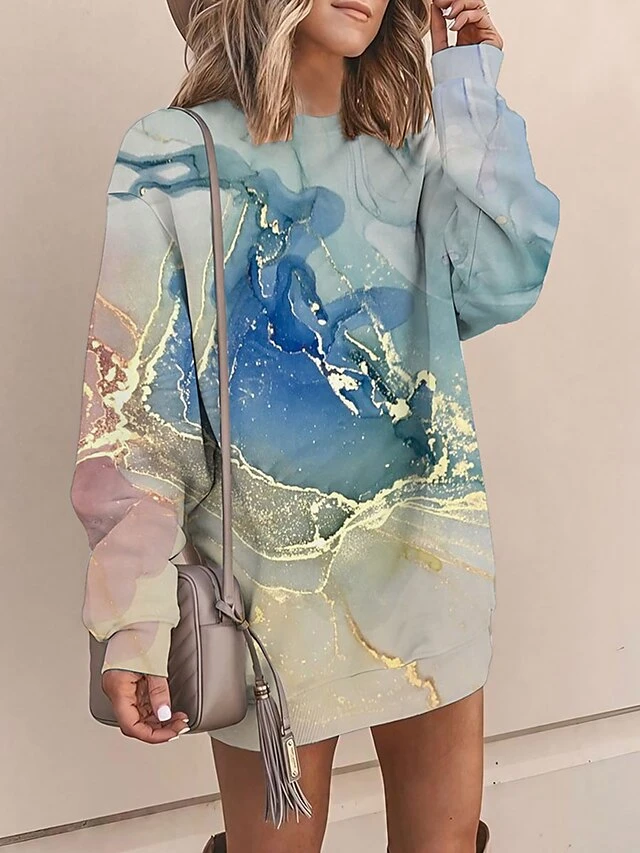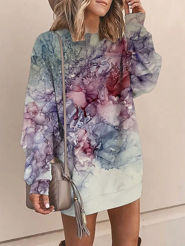 Women’s Casual Dress Sweatshirt Dress Mini Dress Warm Fashion Outdoor Vacation Going Out Crew Neck Print Multi Color Loose Fit Pink Royal Blue Blue S M L XL XXL
