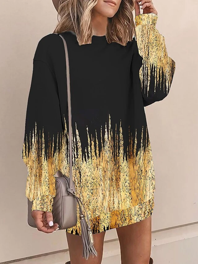 Women’s Casual Dress Sweatshirt Dress Mini Dress Warm Fashion Outdoor Vacation Going Out Crew Neck Print Print Loose Fit Yellow Pink Blue S M L XL XXL