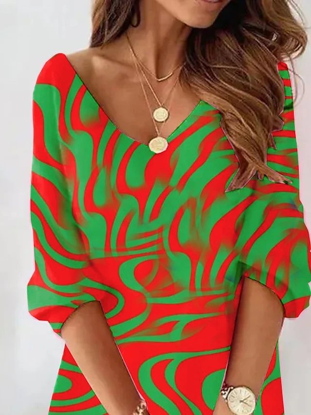 Women’s Casual Dress Sweatshirt Dress Print Dress Abstract Print V Neck Mini Dress Fashion Streetwear Outdoor Daily 3/4 Length Sleeve Loose Fit Neon Pink Purple Green Fall S M L XL XXL