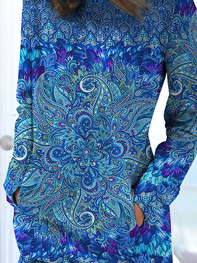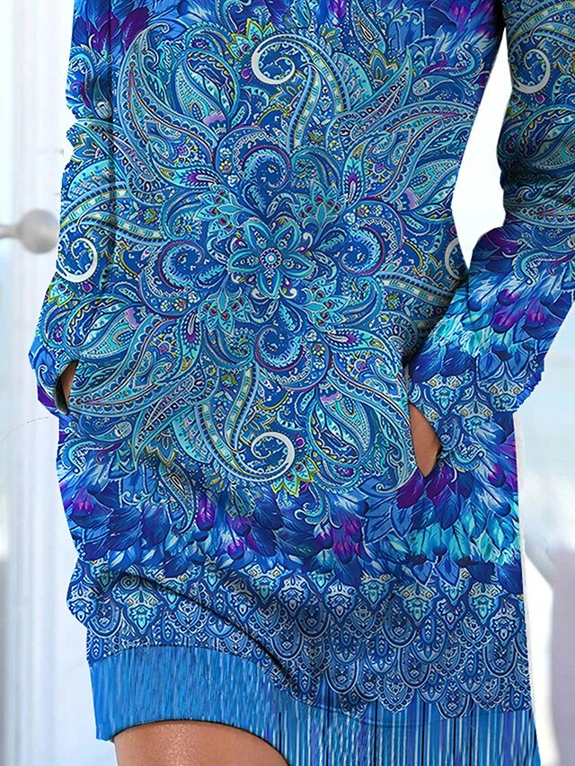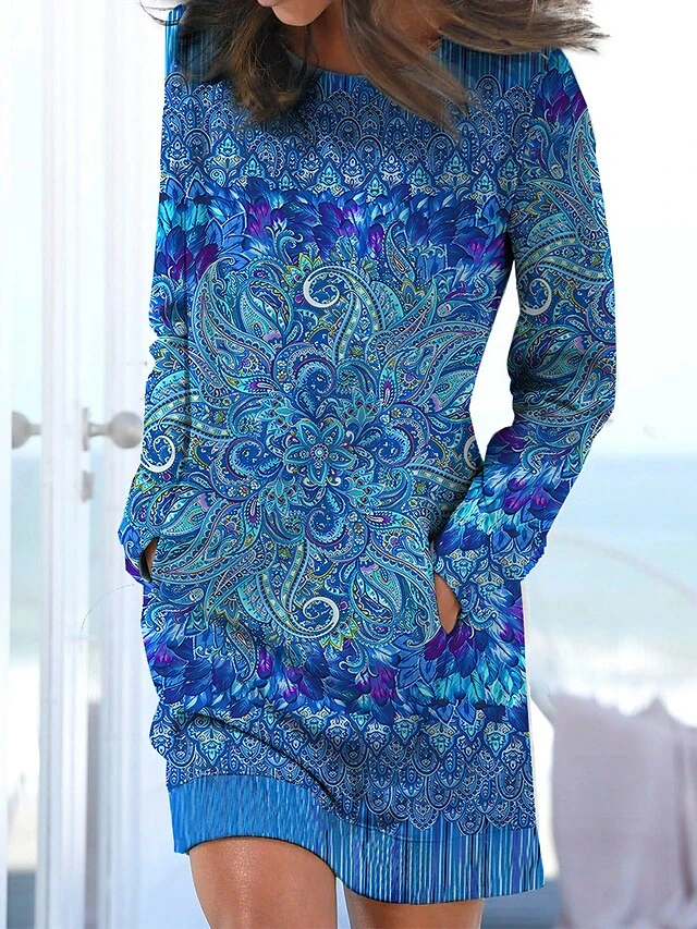 Women’s Casual Dress Sweatshirt Dress Print Dress Graphic Pocket Print Crew Neck Mini Dress Fashion Classic Daily Vacation Long Sleeve Loose Fit Blue Fall Winter S M L XL XXL